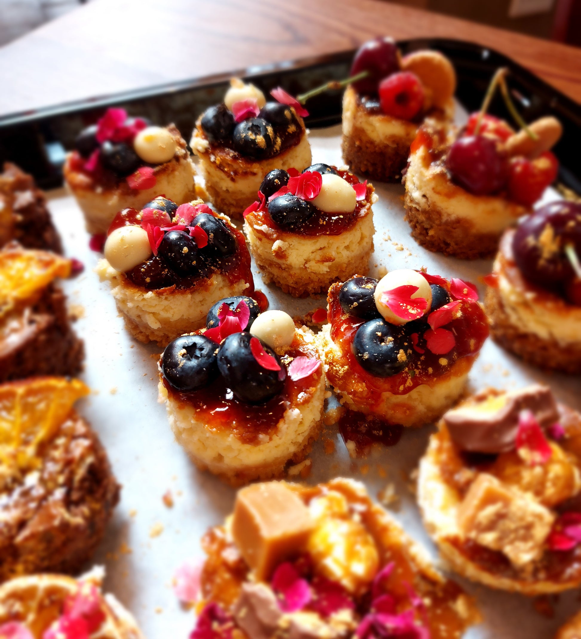 Our famous baked cheesecakes come in different flavours and sizes. Toppings and flower colours may be adapted to special requests.